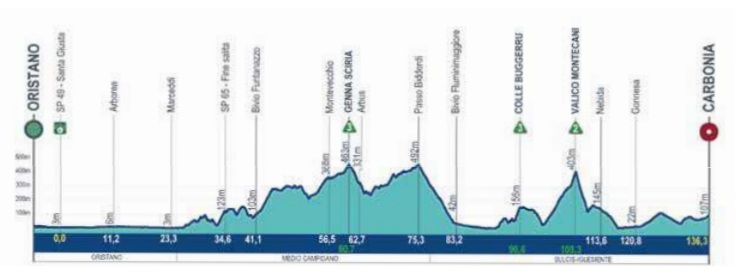Étape 2 (26 fév.) : Oristano – Carbonia (136,3 km)