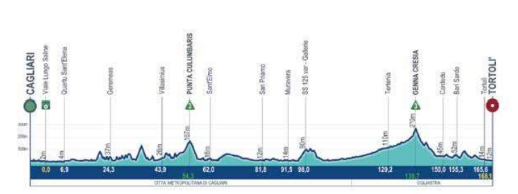 Étape 3 (27 fév.) : Cagliari – Tortolì (168,1 km)