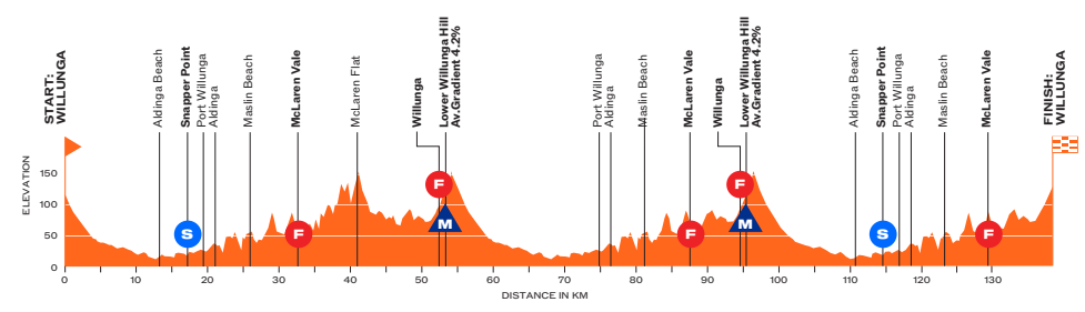 Étape 1 – Willunga → Willunga (vendredi 17 janvier 2026, 137,4 km)