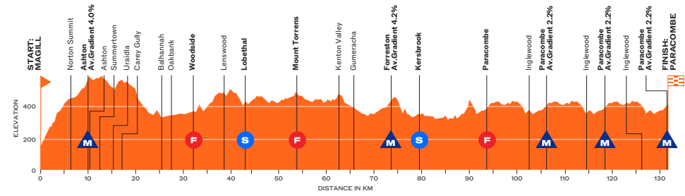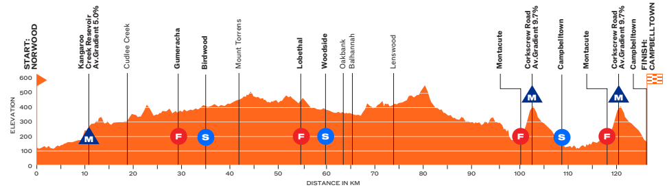 Les organisateurs ont misé sur un relief sélectif, avec notamment un double passage de Corkscrew Road, montée emblématique des collines d’Adélaïde, qui devrait jouer un rôle décisif pour le classement général.