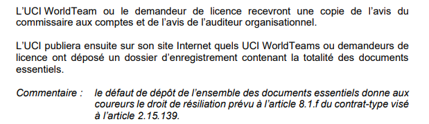 La prochaine étape se situe le 1er novembre. En effet, le règlement UCI stipule la chose suivante : « Les UCI WorldTeams ou demandeurs de licence qui n’auront pas déposé la totalité